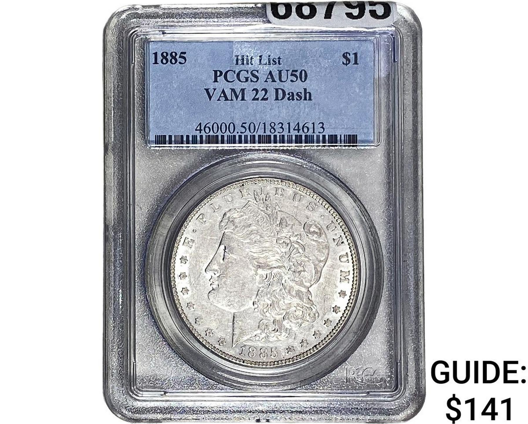 1885 Morgan Silver Dollar PCGS AU50 VAM 22 Dash