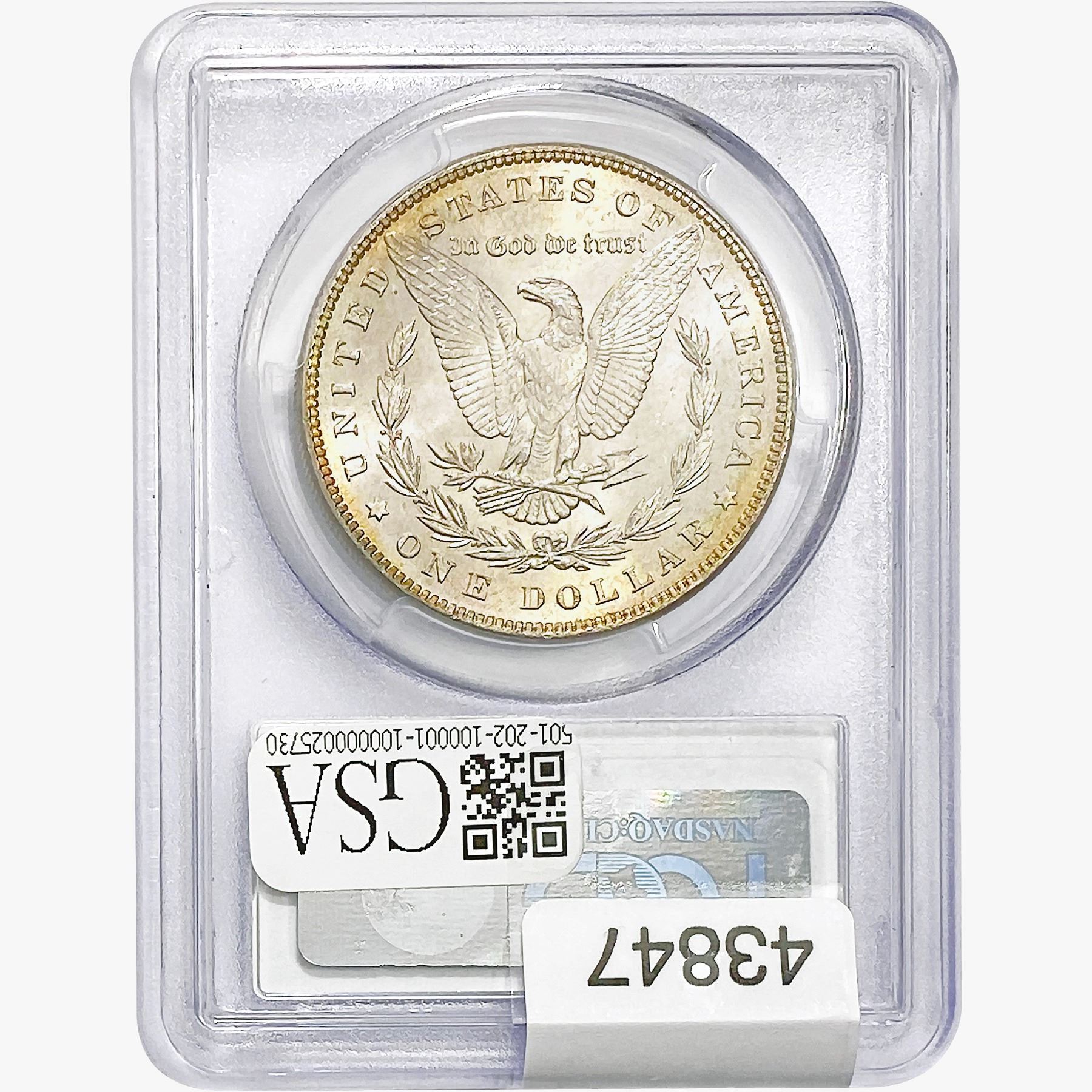 COINS AND CURRENCY LISTED IN GSA’S CATALOG AS GRADED AND ENCAPSULATED BY PCGS, NGC, ANACS, ICG, PCGS CURRENCY, PMG, PCGS BANKNOTE GRADING, CMC OR ANY OTHER THIRD-PARTY GRADING SERVICE ARE LIKEWISE SOLD “AS-IS” EXCEPT AS EXPRESSLY SET FORTH HEREIN. ALL THIRD-PARTY GRADING SERVICE GUARANTEES, INCLUDING AUTHENTICITY, ARE THE SOLE RESPONSIBILITY OF THE THIRD-PARTY GRADING SERVICE AND NOT WARRANTIES OR GUARANTEES OF GSA. BIDDERS SHOULD CONTACT THESE THIRD-PARTY GRADING SERVICES DIRECTLY WITH RESPECT TO ANY CLAIMS OR QUESTIONS THEY MAY HAVE CONCERNING THEIR GUARANTEES AND WARRANTIES. BIDDERS ACKNOWLEDGE AND AGREE THAT AUCTIONEER IS NOT BOUND BY OR LIABLE FOR ANY OPINION OR CERTIFICATION BY ANY THIRD-PARTY GRADING SERVICE. REMOVAL OF A PRODUCT FROM ITS PROTECTIVE CASING OR HOLDER OR ALTERATION OF ANY COIN HOLDER WAIVES ALL RIGHTS CONCERNING THE PRODUCT CONTAINED THEREIN.