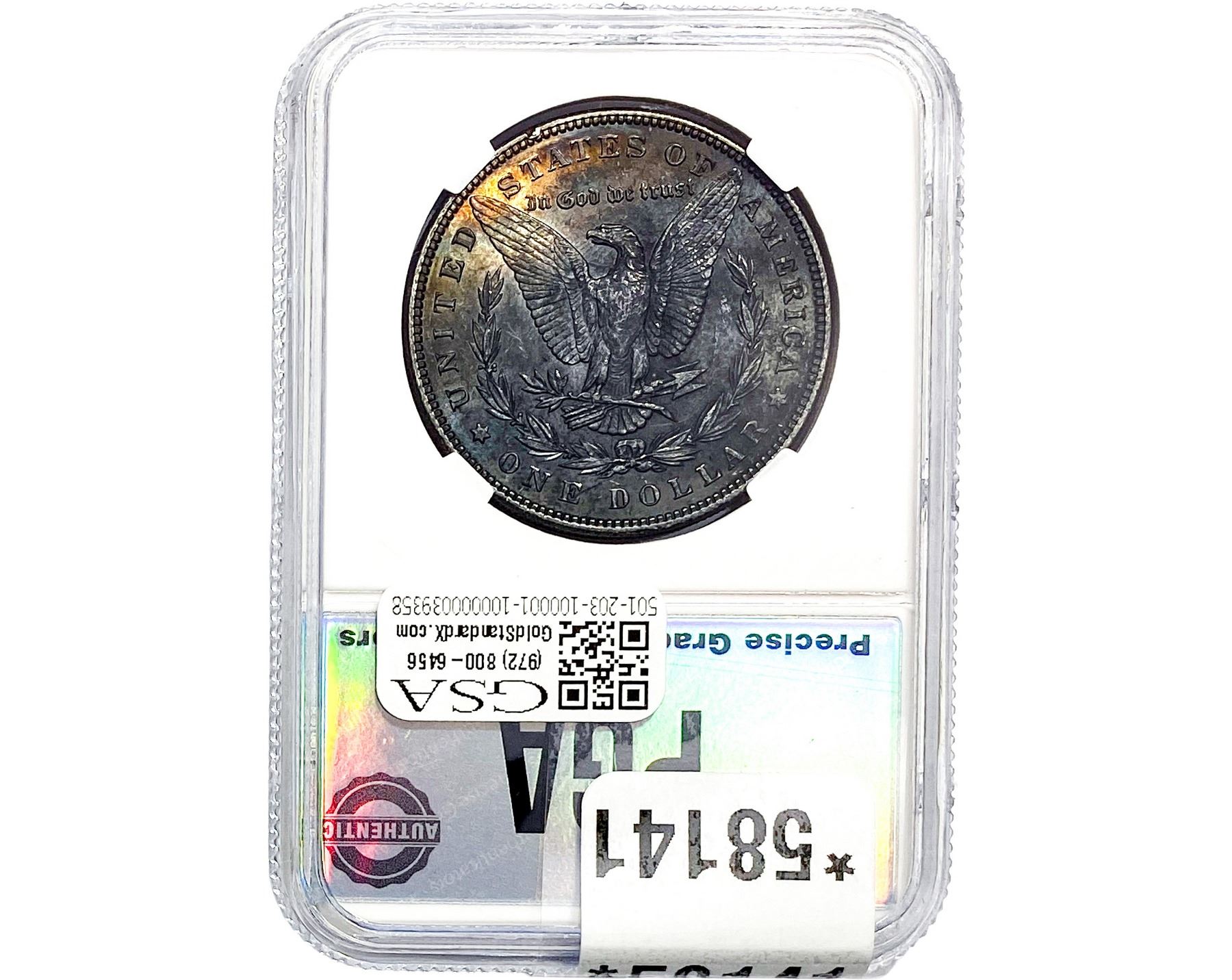 e. Coins sold referencing a third-party grading service are sold “AS IS” without any express or implied warranty, except for a guarantee by GSA that they are genuine. Removal or alteration of the holder, voids all of Bidder’s claims concerning that Product. Certain warranties may be available from the grading services and Bidders are referred to them for further details: Numismatic Guaranty Corporation (NGC), PO Box 4776, Sarasota, FL 34230, www.ngccoin.com/services/writtenguarantee.asp; Professional Coin Grading Services (PCGS), PO Box 9458, Newport Beach, CA 92658, www.pcgs.com/guarantee.html; ANACS, 6555 S. Kenton St., Ste. 303, Englewood, CO 80111; and Independent Coin Grading Co. (ICG), 7901 East Bellview, Ave., Suite 50, Englewood, CO 80111.
