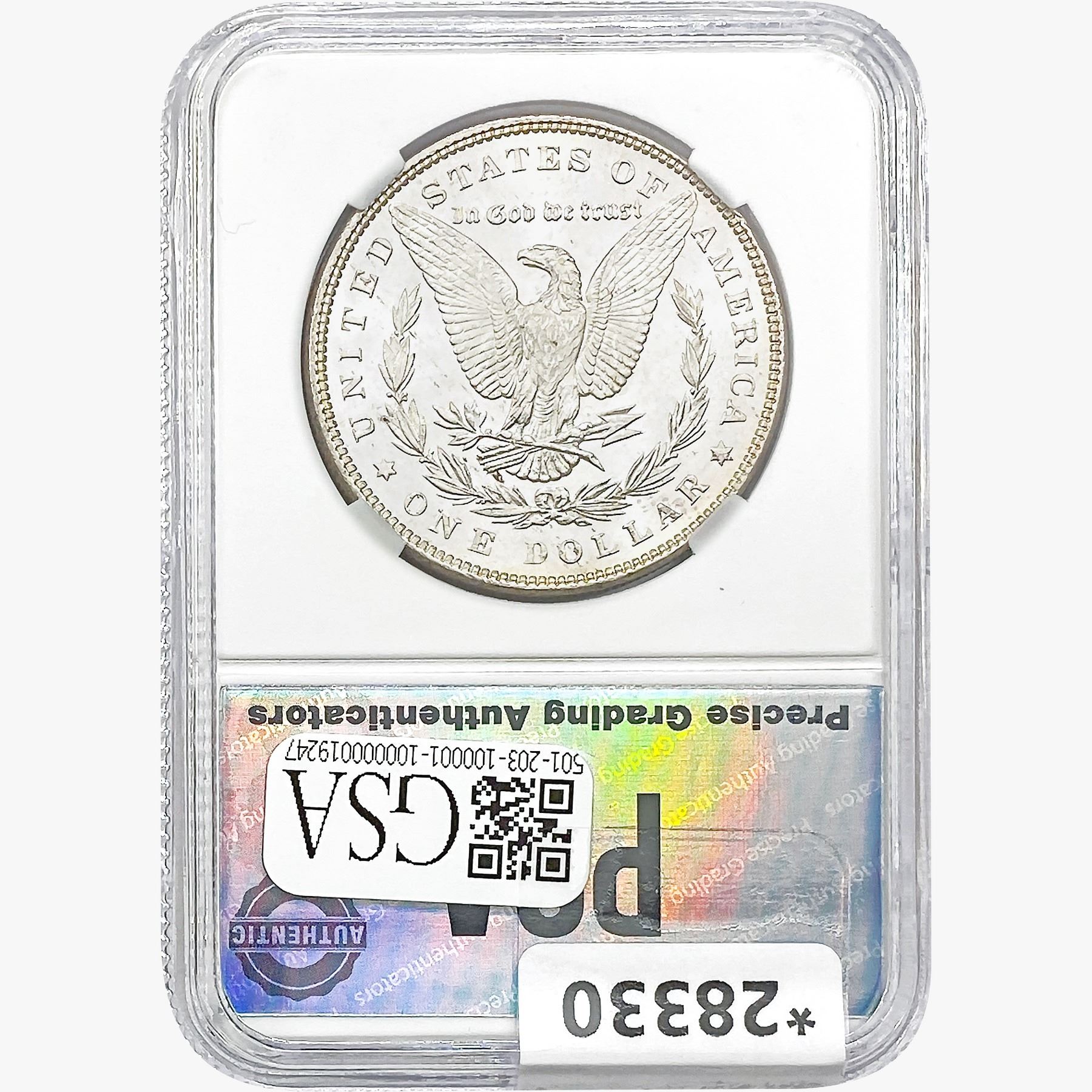 COINS AND CURRENCY LISTED IN GSA’S CATALOG AS GRADED AND ENCAPSULATED BY PCGS, NGC, ANACS, ICG, PCGS CURRENCY, PMG, PCGS BANKNOTE GRADING, CMC OR ANY OTHER THIRD-PARTY GRADING SERVICE ARE LIKEWISE SOLD “AS-IS” EXCEPT AS EXPRESSLY SET FORTH HEREIN. ALL THIRD-PARTY GRADING SERVICE GUARANTEES, INCLUDING AUTHENTICITY, ARE THE SOLE RESPONSIBILITY OF THE THIRD-PARTY GRADING SERVICE AND NOT WARRANTIES OR GUARANTEES OF GSA. BIDDERS SHOULD CONTACT THESE THIRD-PARTY GRADING SERVICES DIRECTLY WITH RESPECT TO ANY CLAIMS OR QUESTIONS THEY MAY HAVE CONCERNING THEIR GUARANTEES AND WARRANTIES. BIDDERS ACKNOWLEDGE AND AGREE THAT AUCTIONEER IS NOT BOUND BY OR LIABLE FOR ANY OPINION OR CERTIFICATION BY ANY THIRD-PARTY GRADING SERVICE. REMOVAL OF A PRODUCT FROM ITS PROTECTIVE CASING OR HOLDER OR ALTERATION OF ANY COIN HOLDER WAIVES ALL RIGHTS CONCERNING THE PRODUCT CONTAINED THEREIN.