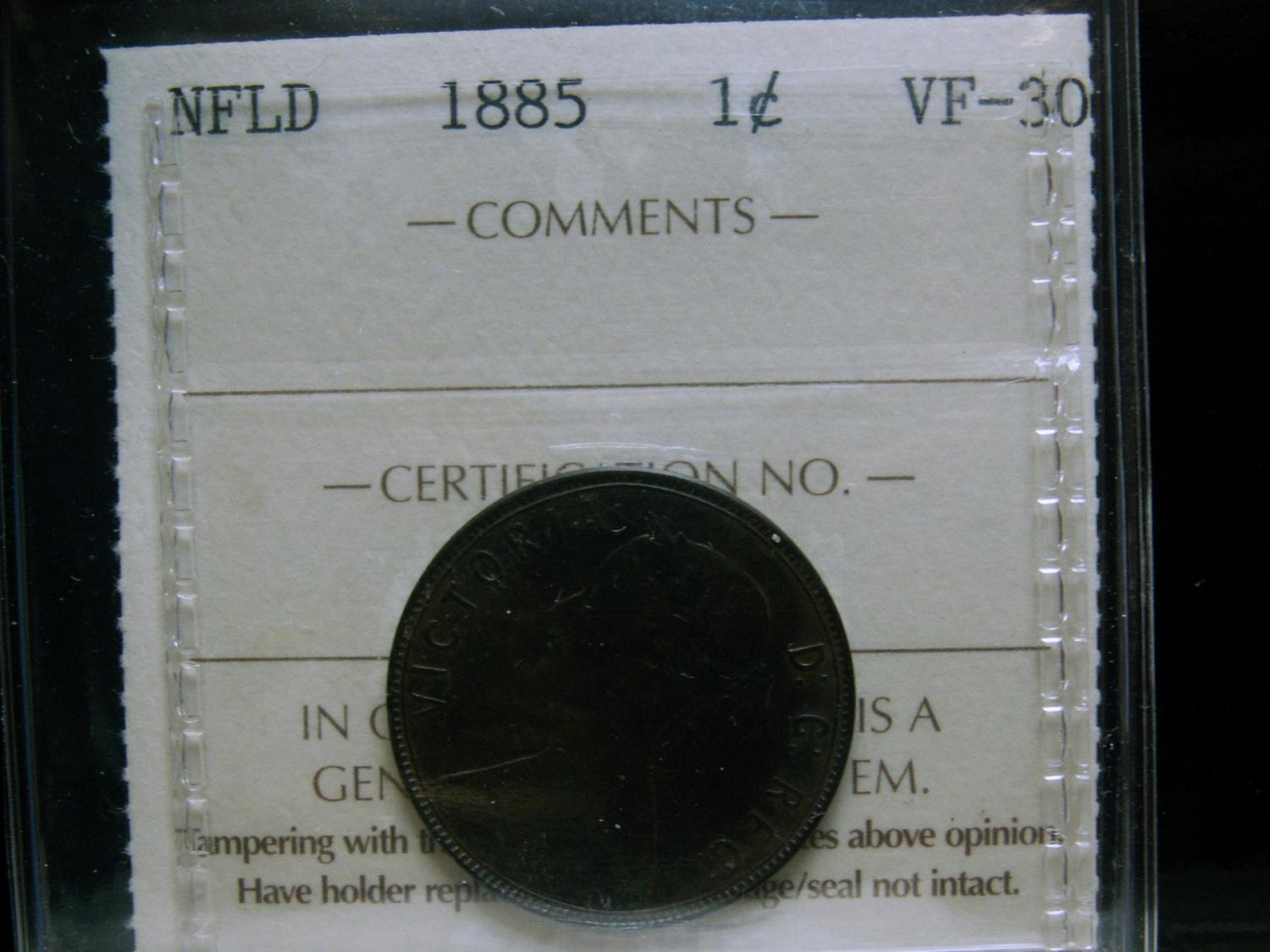 1885 NFLD 1¢ ICCS VF30