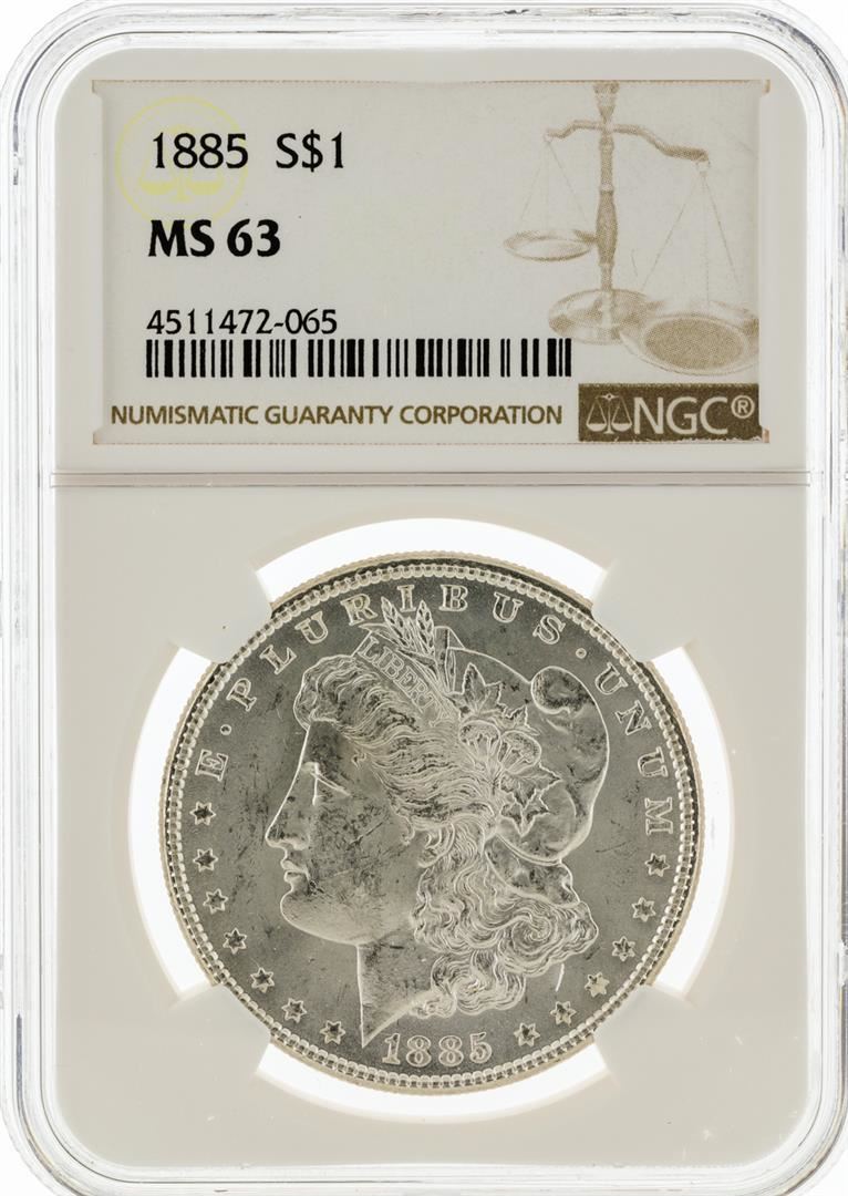 One 1885 NGC MS63 Morgan Silver Dollar. NGC Certified.