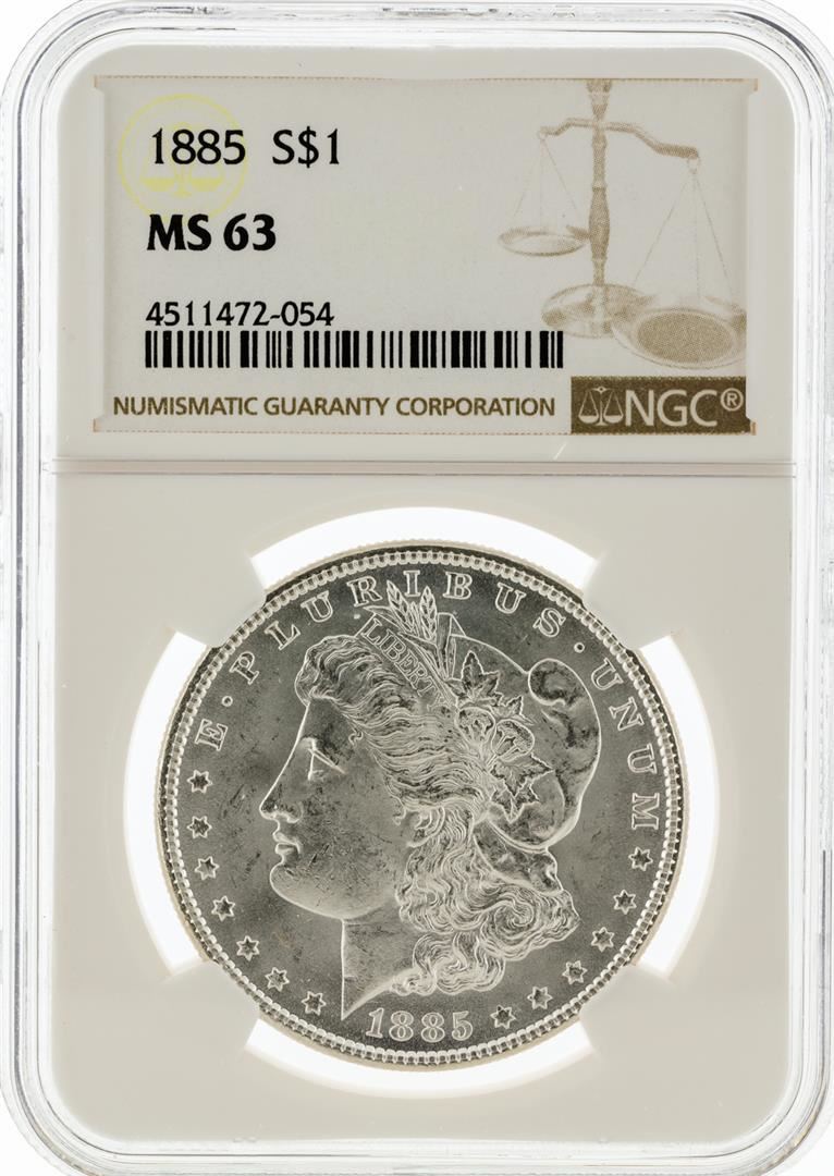 One 1885 NGC MS63 Morgan Silver Dollar. NGC Certified.