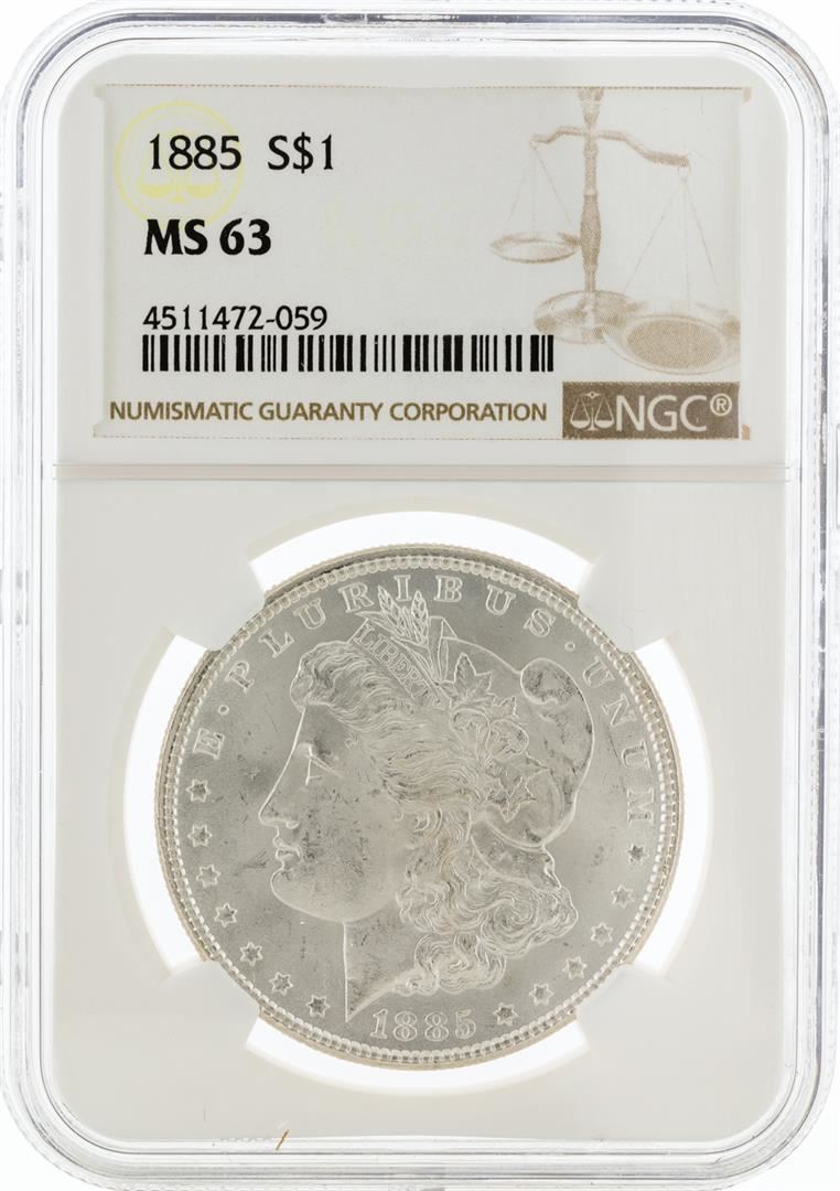 One 1885 NGC MS63 Morgan Silver Dollar. NGC Certified.