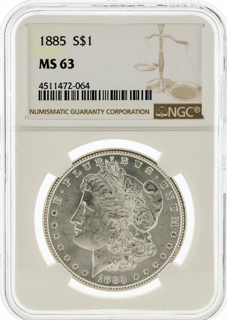One 1885 NGC MS63 Morgan Silver Dollar. NGC Certified.