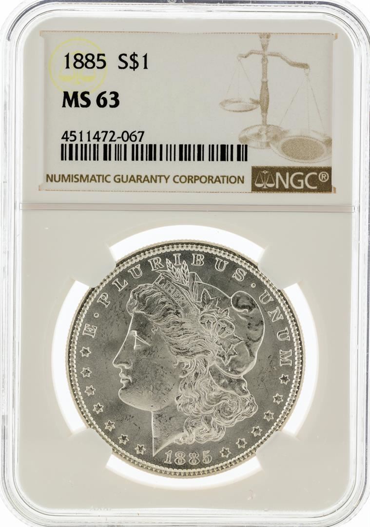 One 1885 NGC MS63 Morgan Silver Dollar. NGC Certified.