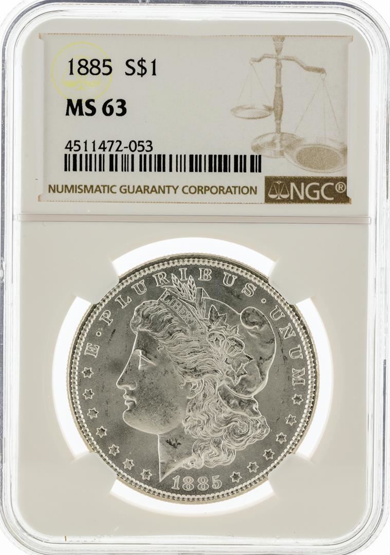 One 1885 NGC MS63 Morgan Silver Dollar. NGC Certified.