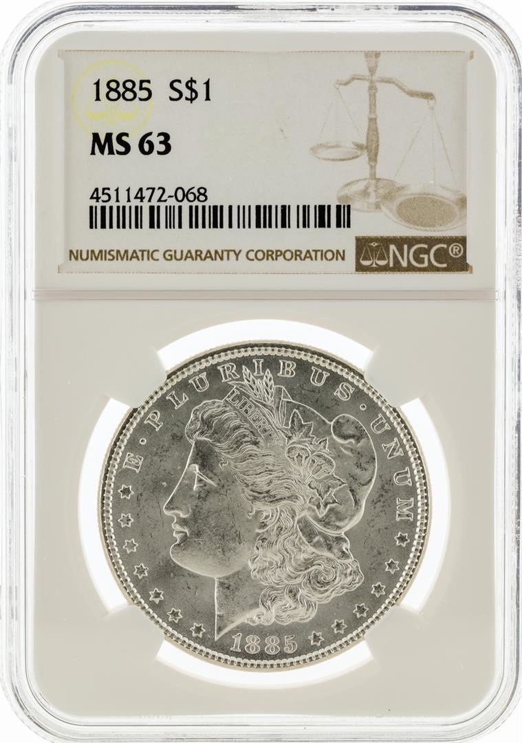 One 1885 NGC MS63 Morgan Silver Dollar. NGC Certified.