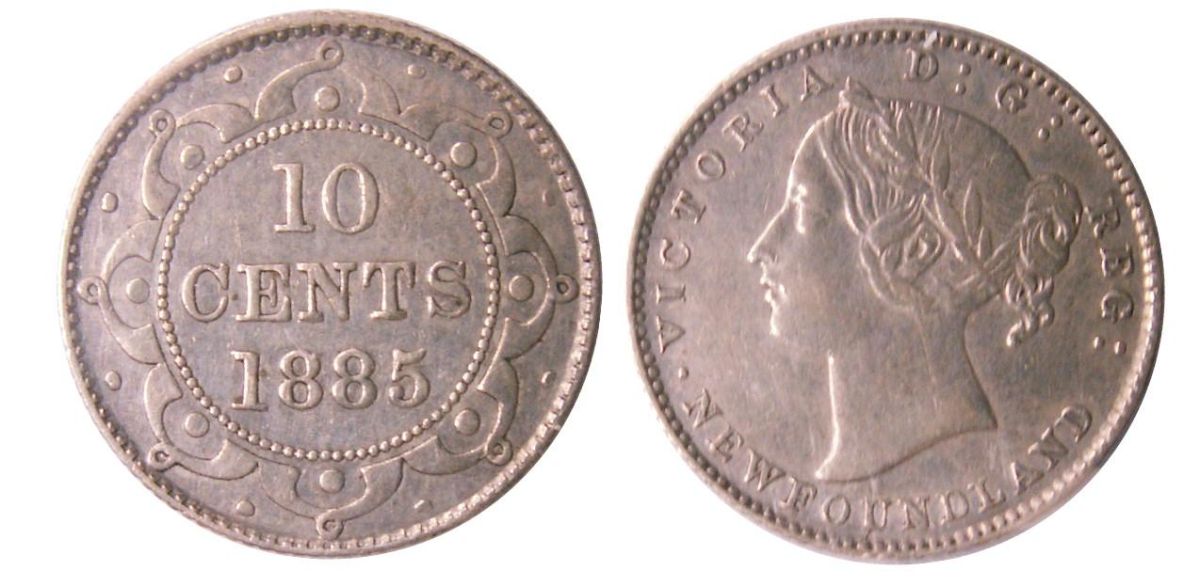 1885 Nfld 10¢ Obv 2 ICCS VF30.