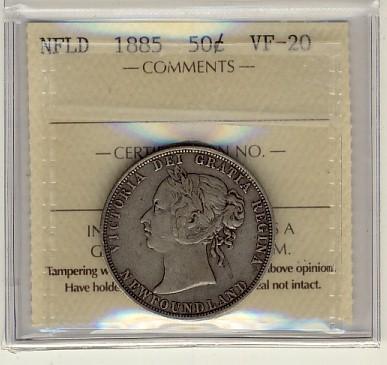 1885 Nfld 50¢ ICCS VF20. Key date issue.