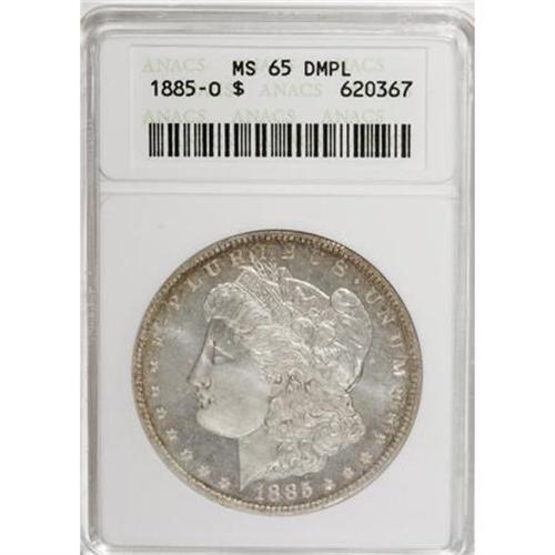 <B>1885-O $1 MS65 Deep Mirror Prooflike ANACS.</B></I> NGC Census: (140/16). PCGS Population (202/35). Numismedia Wsl. Price for NGC/PCGS coin in MS65: $700. (#97163)<BR><BR><b>Shipping:</b> Coins & Currency (<a target="_blank" href="http://www.heritageauctions.com/common/shipping.php">view shipping information</a>)