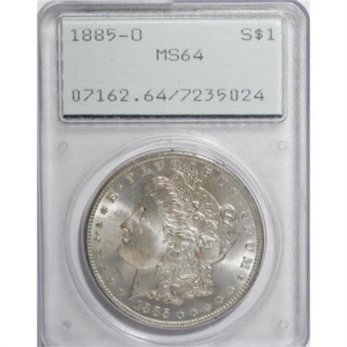 <B>1885-O $1 MS64 PCGS </B></I>and a<B> 1904-O MS64 PCGS. </B></I><BR><BR><B>Coin Engraver:</B> George T. Morgan<BR><BR><b>Shipping:</b> Coins & Currency (<a target="_blank" href="http://www.heritageauctions.com/common/shipping.php">view shipping information</a>)