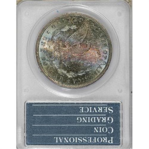 <B>1885-O $1 MS65 PCGS.</B></I> This well-defined and spectacularly toned Gem offers vibrant luster and incredible eye appeal. Warm orange and rose-peach shadings grace the centers, while cooler blue-green and violet hues appear at the margins. Housed in a prior-generation PCGS holder.<BR><BR><B>Coin Engraver:</B> George T. Morgan<BR><BR><b>Shipping:</b> Coins & Currency (<a target="_blank" href="http://www.heritageauctions.com/common/shipping.php">view shipping information</a>)