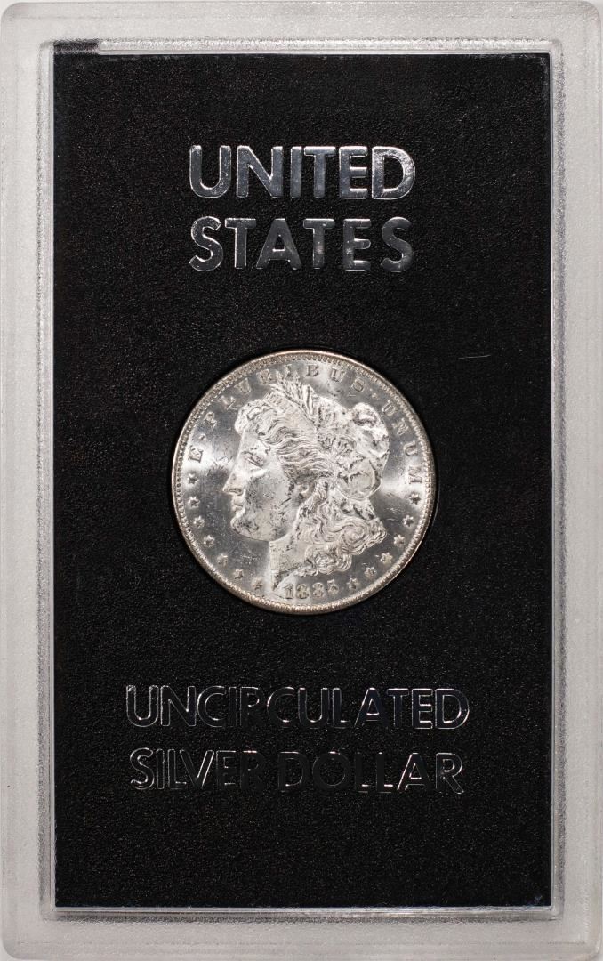 One 1885-O $1 Morgan Silver Dollar Coin GSA Hoard Uncirculated w/ Box.