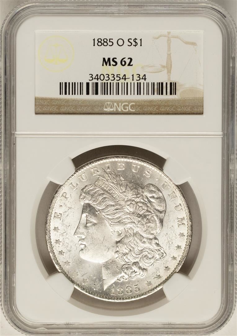 One 1885-O $1 Morgan Silver Dollar Coin NGC MS62. NGC Certified.