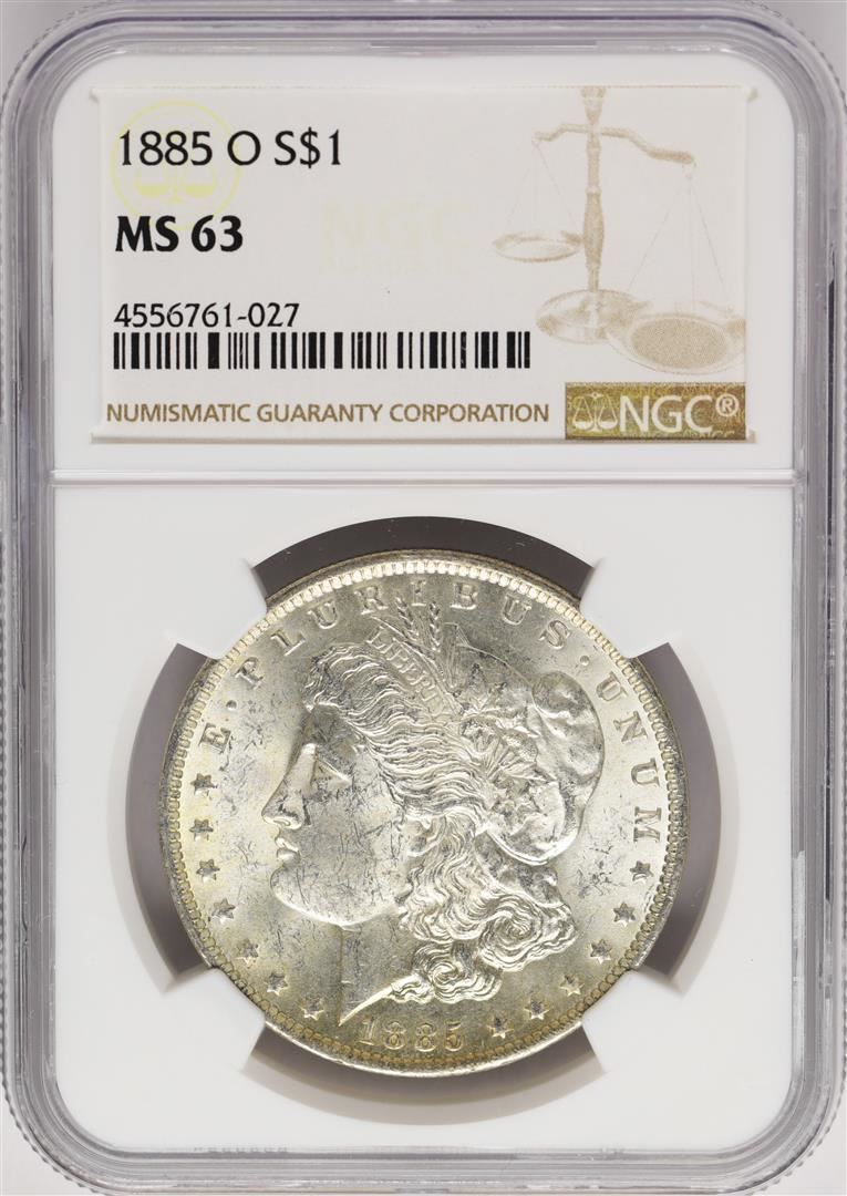 One 1885-O $1 Morgan Silver Dollar Coin NGC MS63 Amazing Toning. NGC Certified.