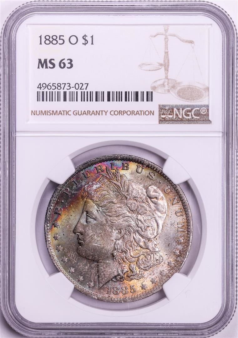 One 1885-O $1 Morgan Silver Dollar Coin NGC MS63 Amazing Toning. NGC Certified.