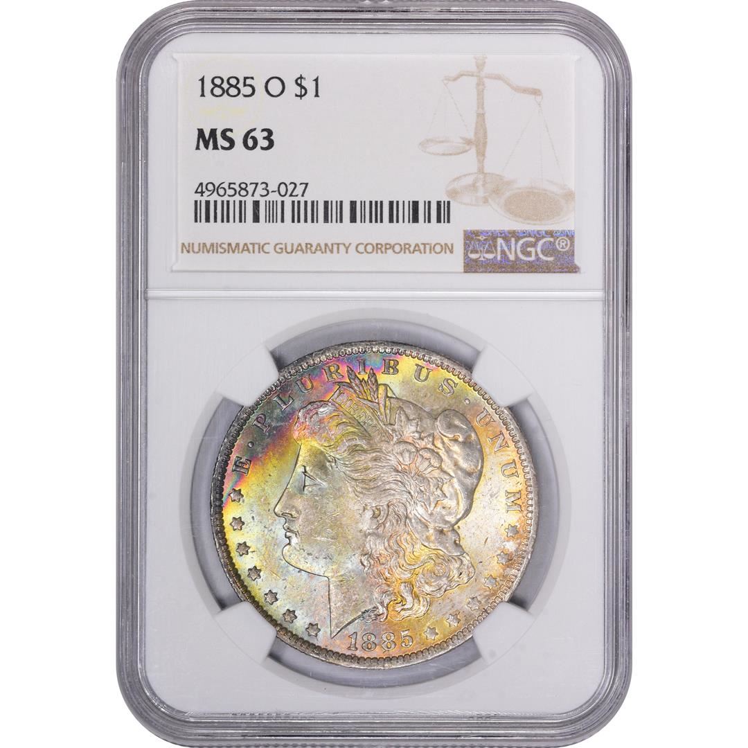 One 1885-O $1 Morgan Silver Dollar Coin NGC MS63 Amazing Toning. NGC Certified.