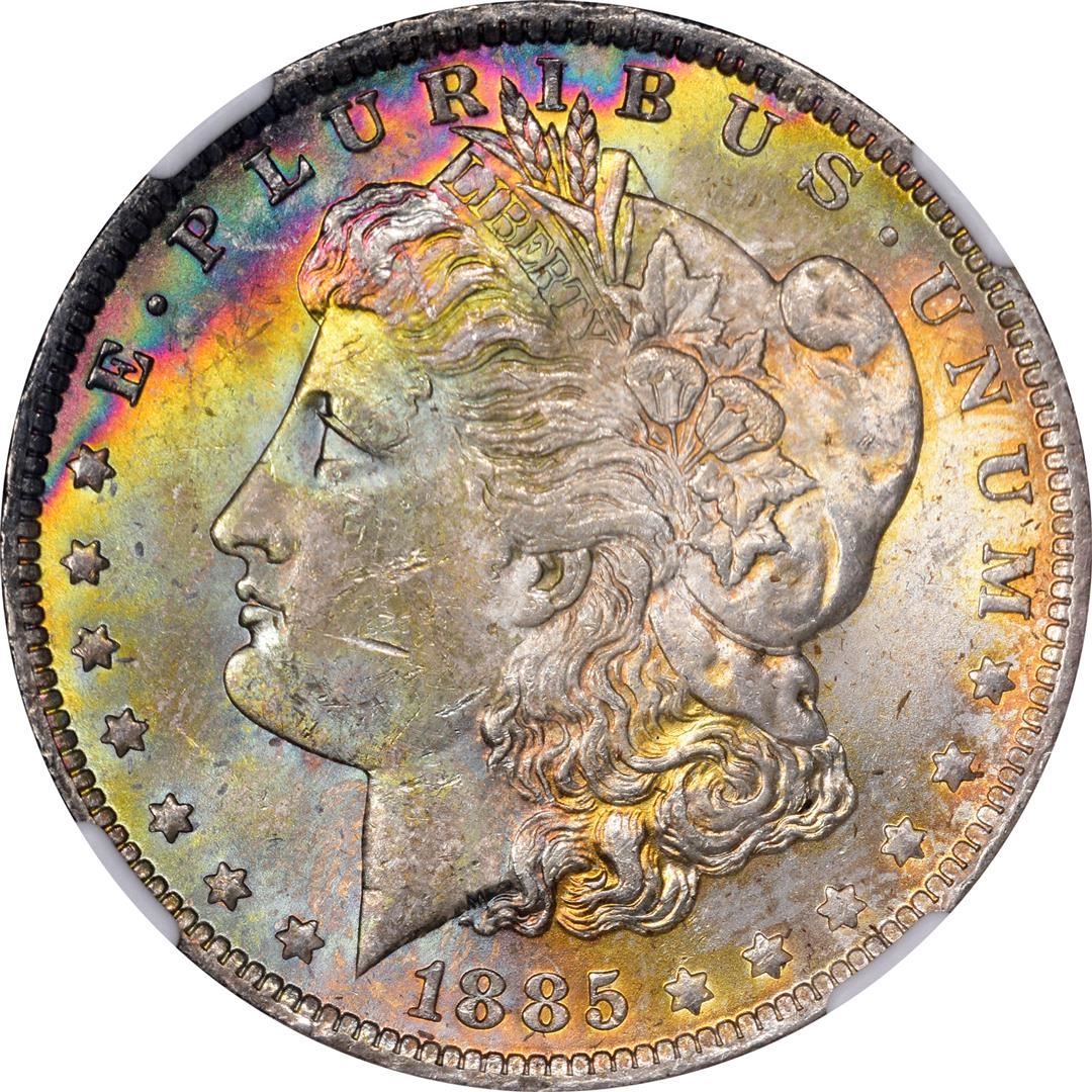 One 1885-O $1 Morgan Silver Dollar Coin NGC MS63 Amazing Toning. NGC Certified.