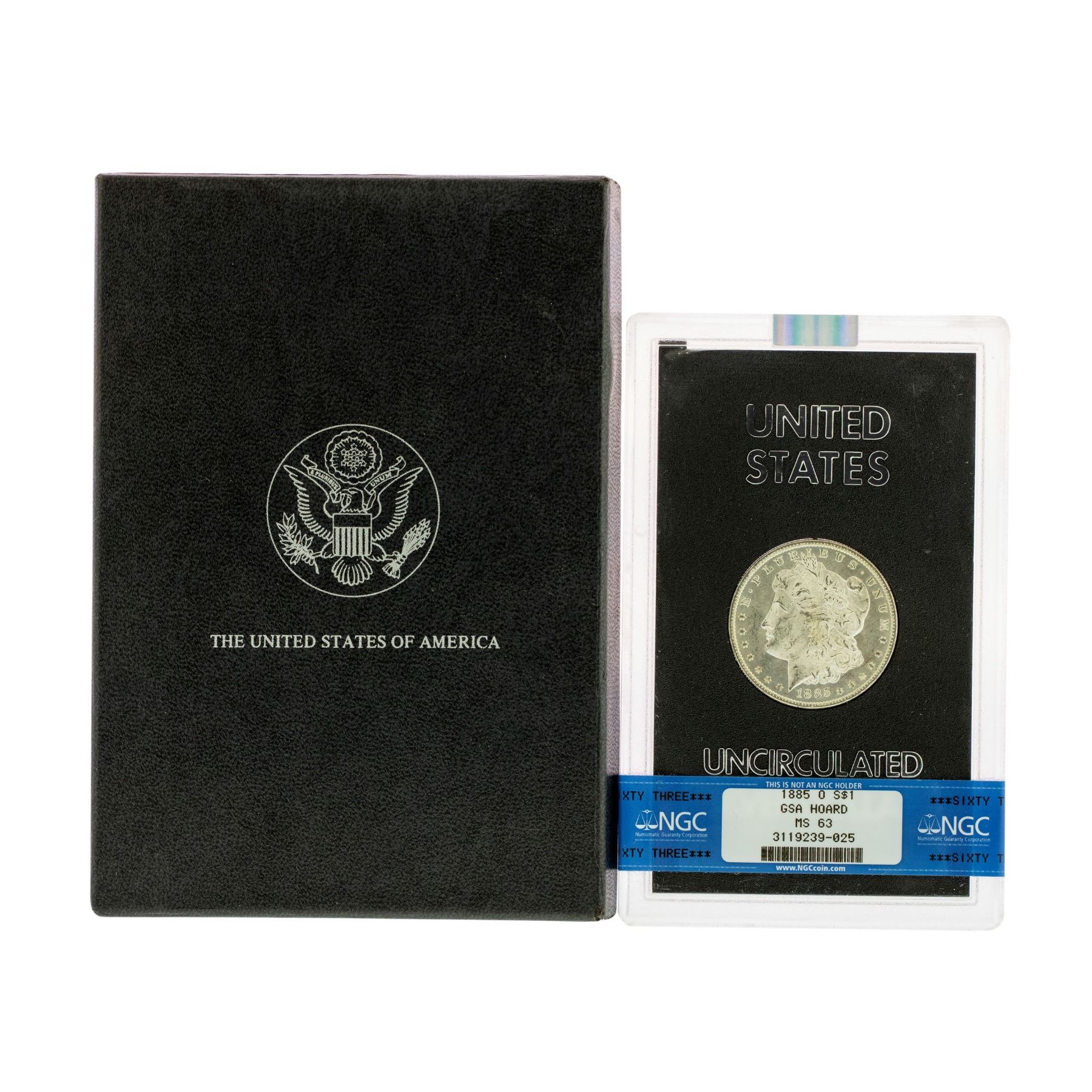 One 1885-O $1 Morgan Silver Dollar Coin NGC MS63 GSA Hoard w/ Box.