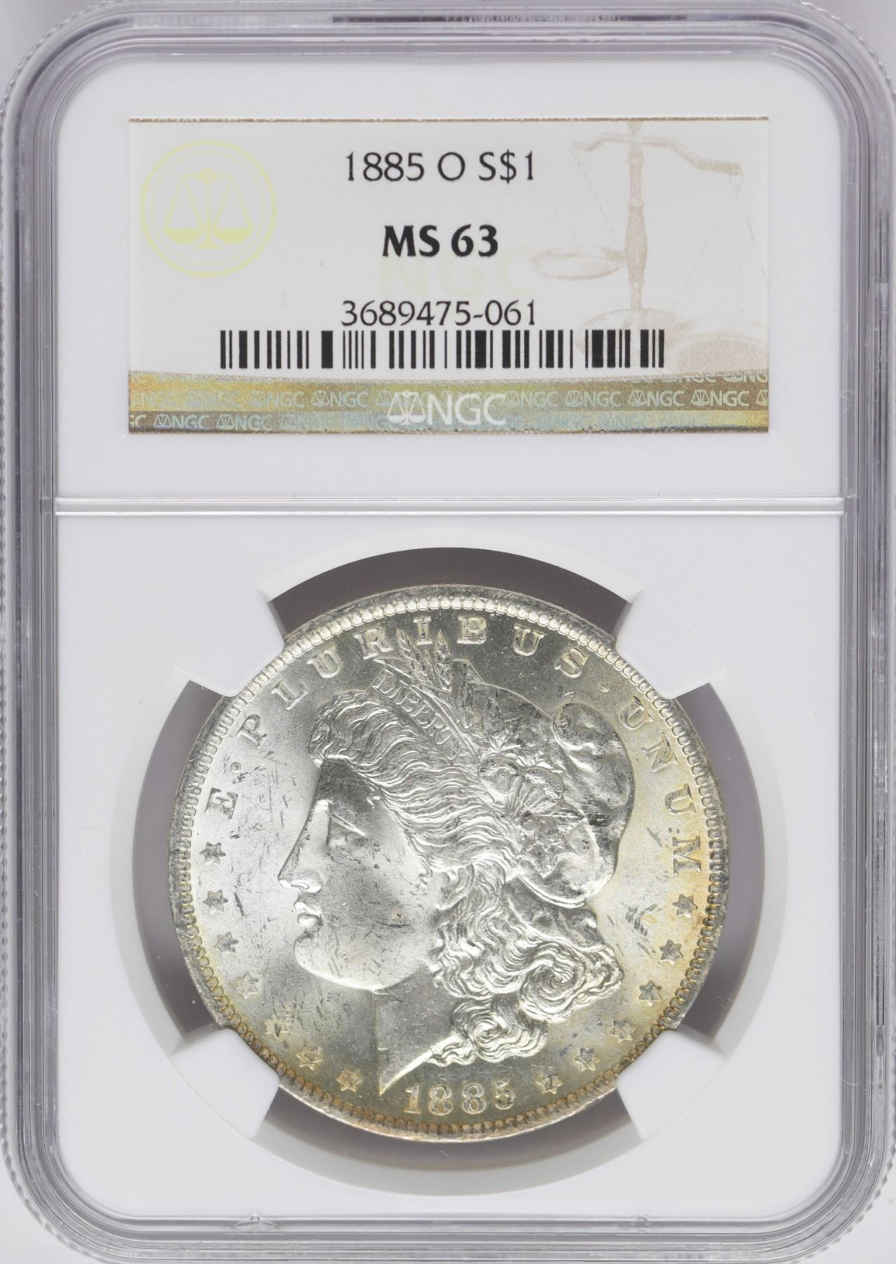 One 1885-O $1 Morgan Silver Dollar Coin NGC MS63 Nice Toning.
