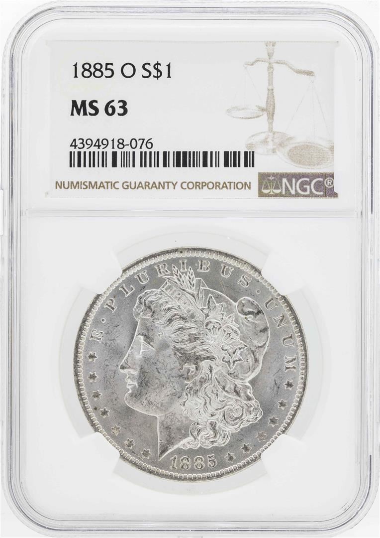 One 1885-O $1 Morgan Silver Dollar Coin NGC MS63. NGC Certified.