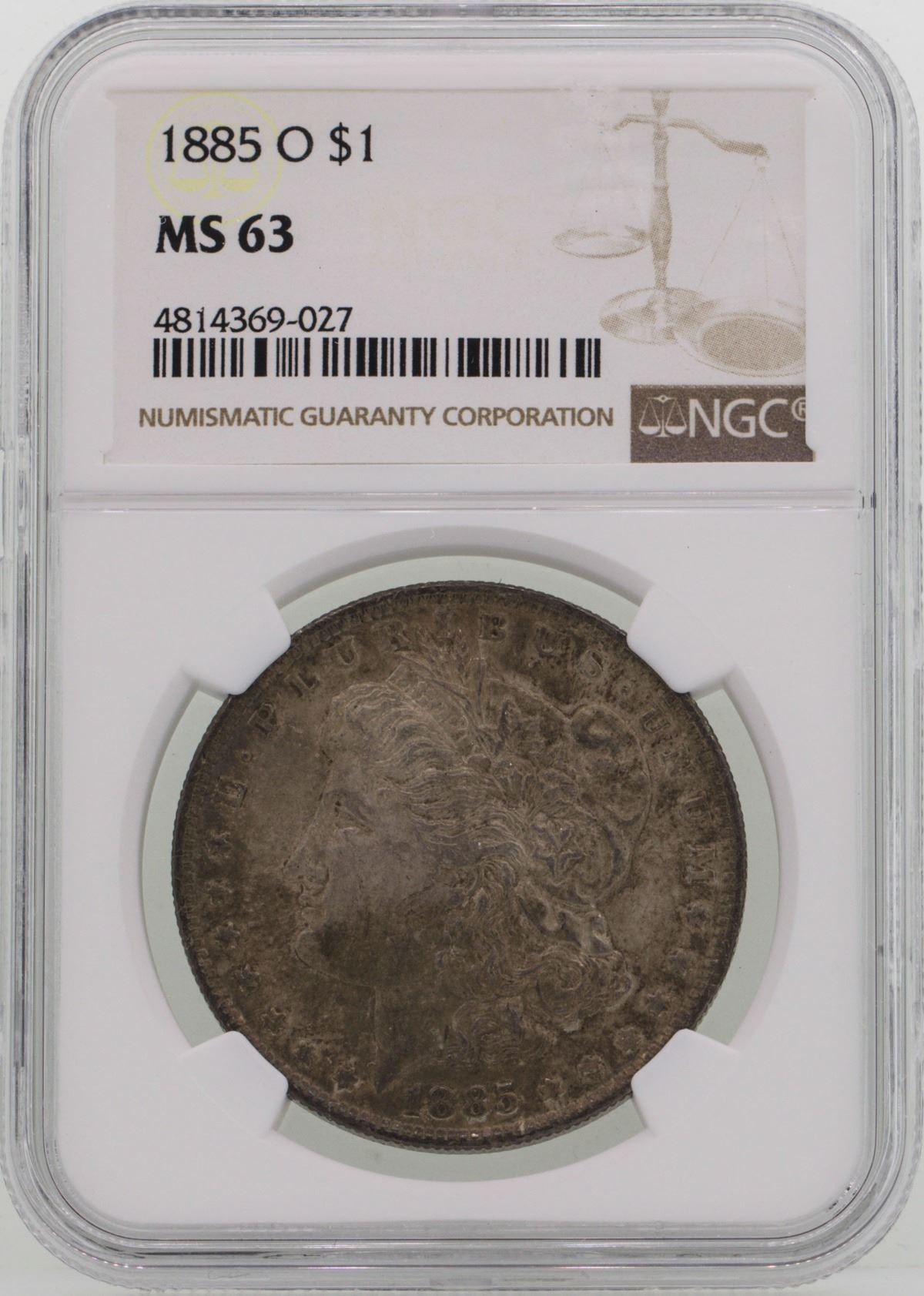 One 1885-O $1 Morgan Silver Dollar Coin NGC MS63.