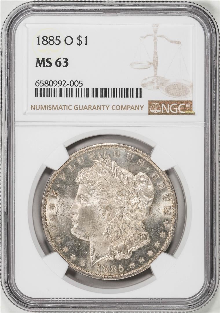 One 1885-O $1 Morgan Silver Dollar Coin NGC MS63. NGC Certified.
