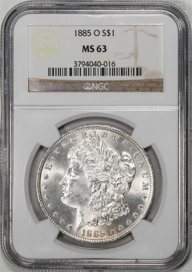 One 1885-O $1 Morgan Silver Dollar Coin NGC MS63. NGC Certified.
