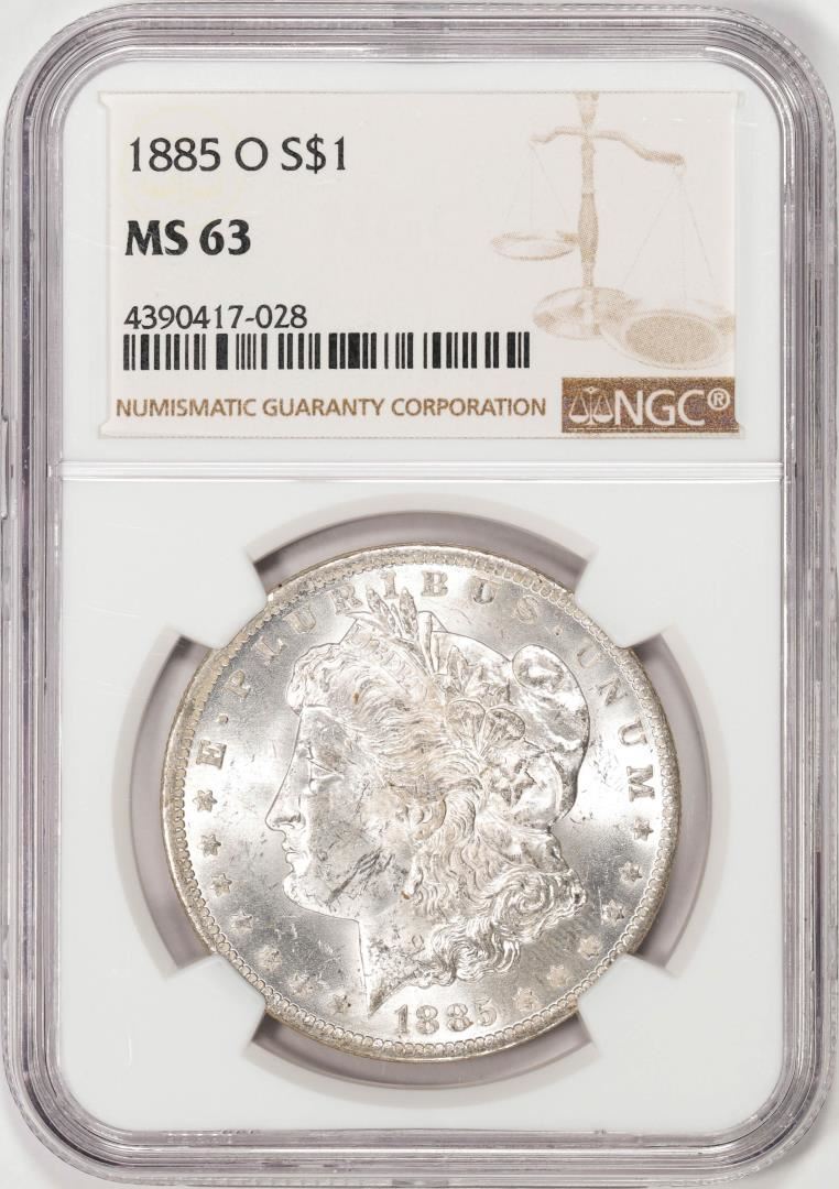 One 1885-O $1 Morgan Silver Dollar Coin NGC MS63. NGC Certified.