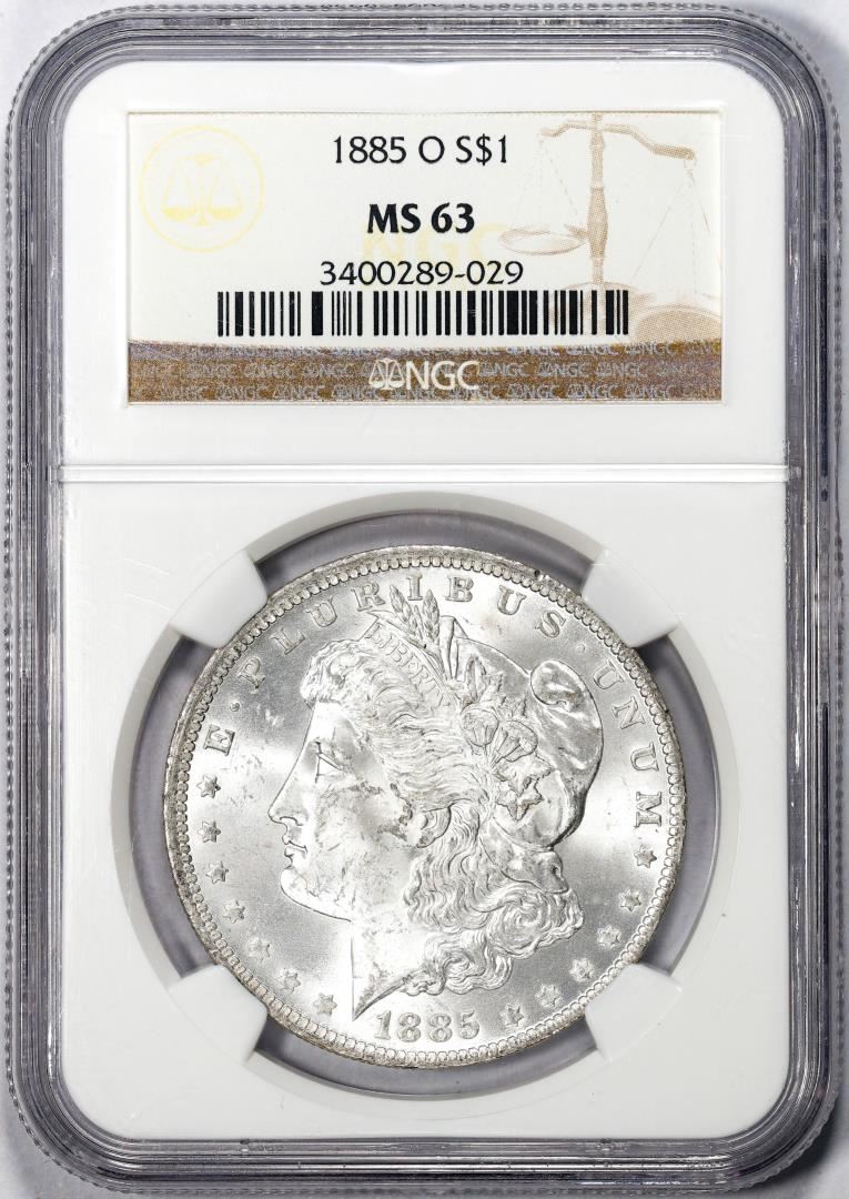 One 1885-O $1 Morgan Silver Dollar Coin NGC MS63.