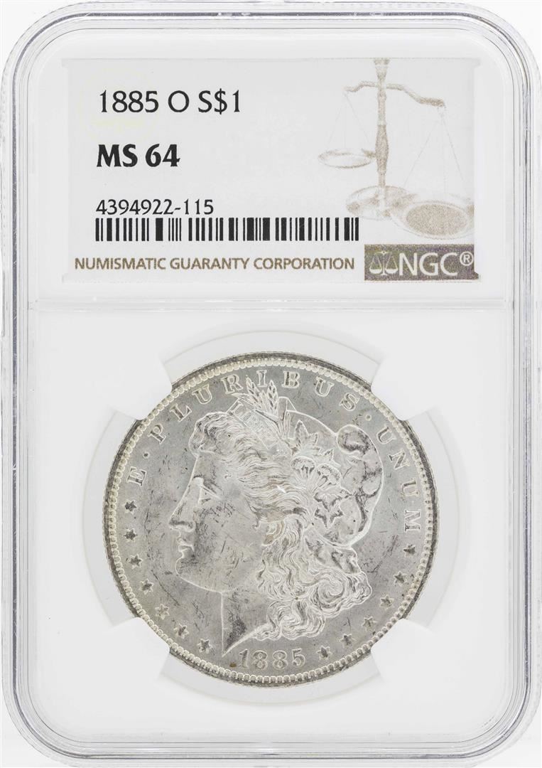 One 1885-O $1 Morgan Silver Dollar Coin NGC MS64. NGC Certified.
