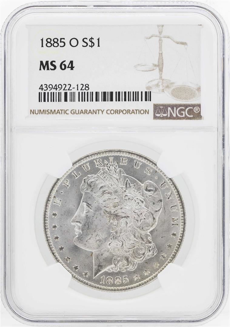 One 1885-O $1 Morgan Silver Dollar Coin NGC MS64. NGC Certified.