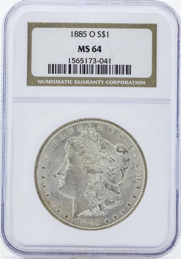 One 1885-O $1 Morgan Silver Dollar Coin NGC MS64. NGC Certified.
