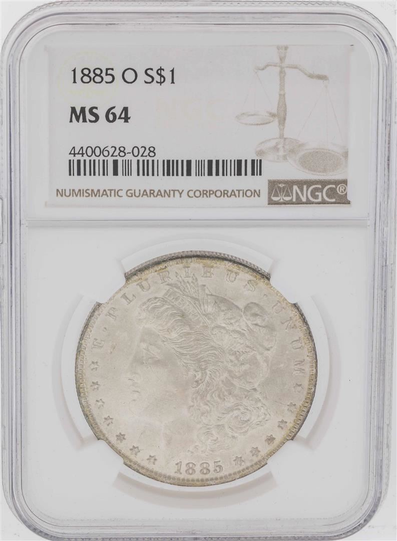 One 1885-O $1 Morgan Silver Dollar Coin NGC MS64. NGC Certified.