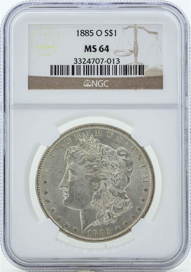One 1885-O $1 Morgan Silver Dollar Coin NGC MS64. NGC Certified.