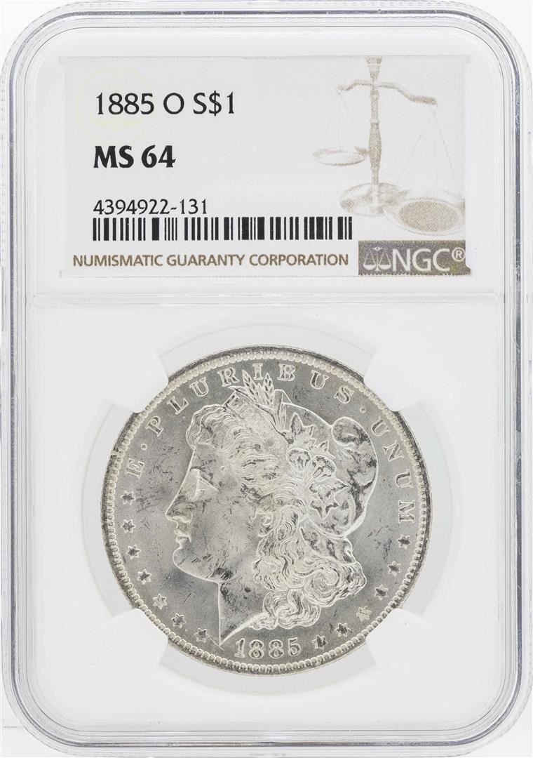 One 1885-O $1 Morgan Silver Dollar Coin NGC MS64. NGC Certified.