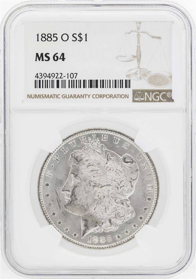 One 1885-O $1 Morgan Silver Dollar Coin NGC MS64. NGC Certified.
