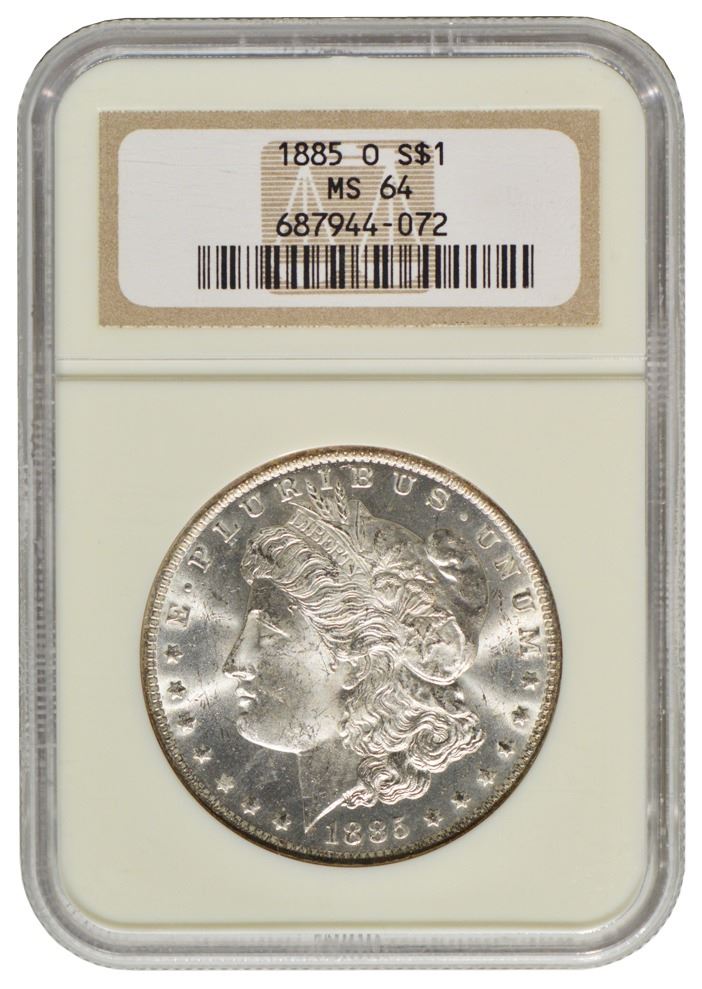 One 1885-O $1 Morgan Silver Dollar Coin NGC MS64.