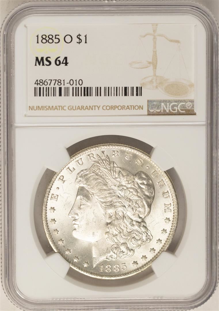 One 1885-O $1 Morgan Silver Dollar Coin NGC MS64. NGC Certified.