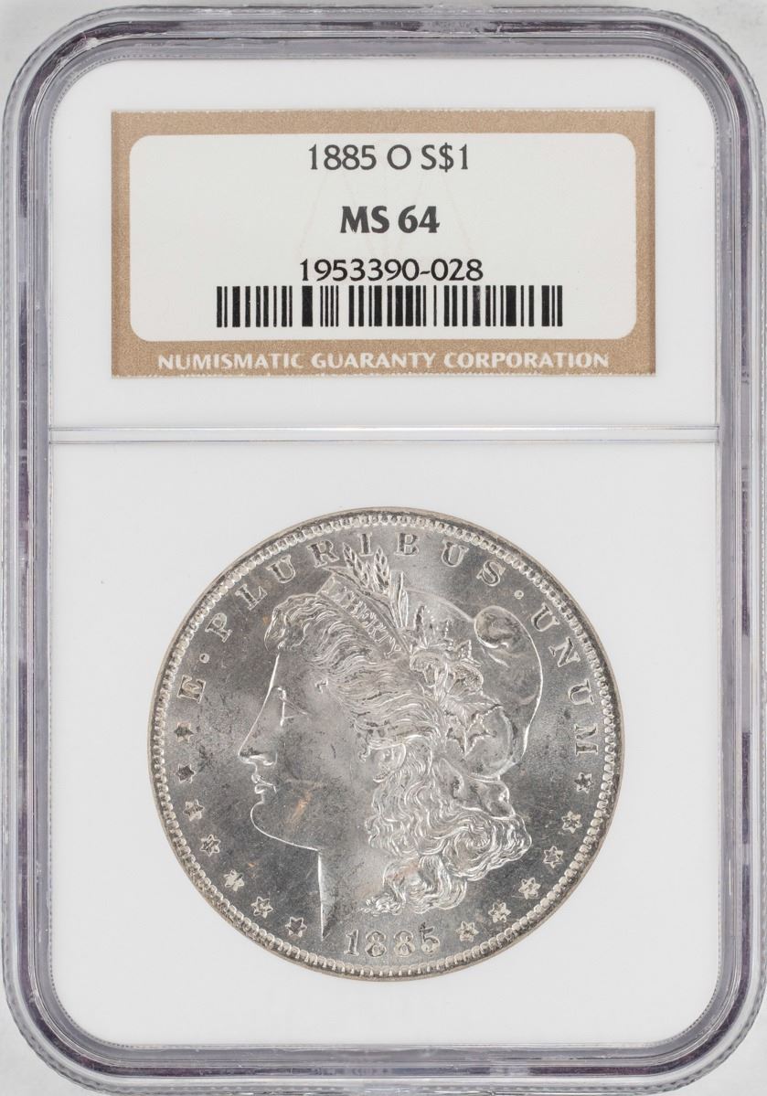 One 1885-O $1 Morgan Silver Dollar Coin NGC MS64.