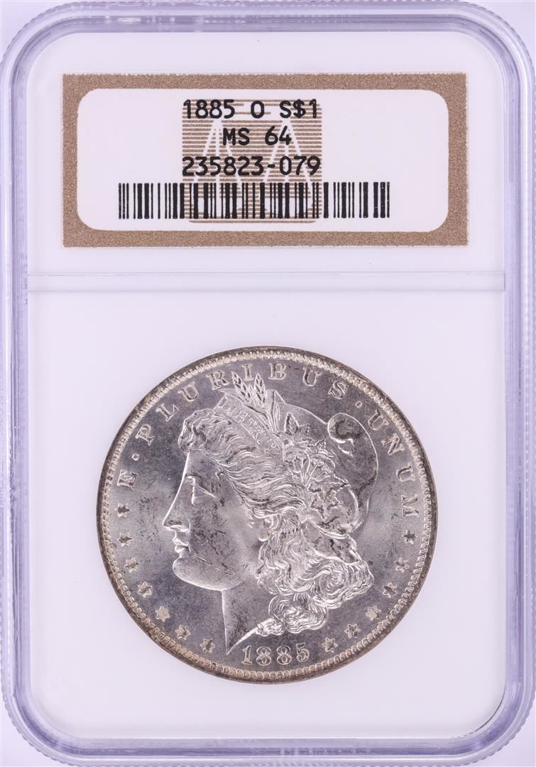 One 1885-O $1 Morgan Silver Dollar Coin NGC MS64. NGC Certified.
