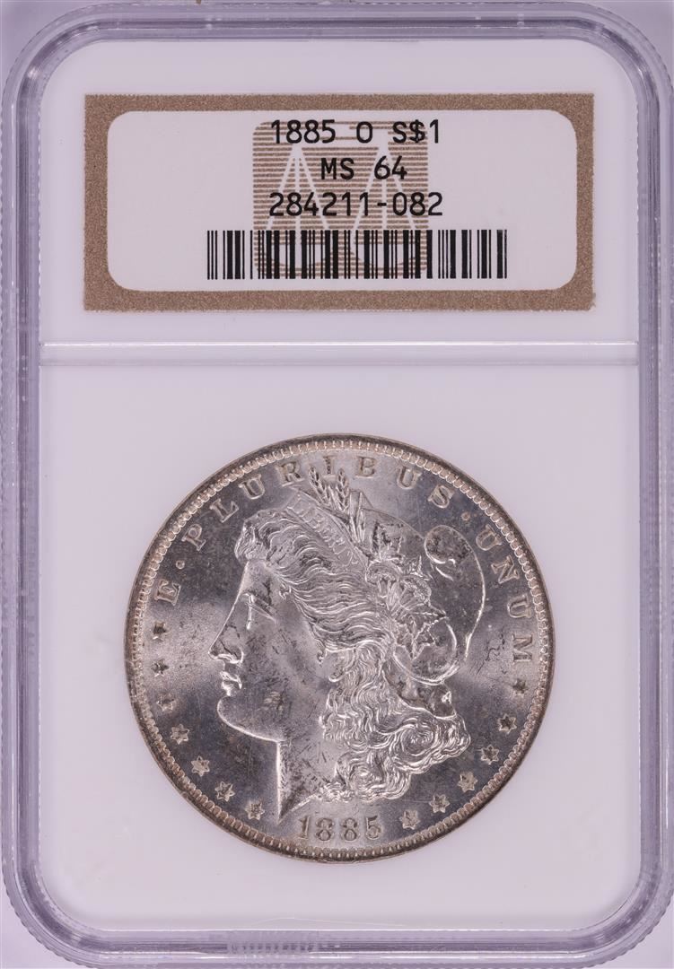 One 1885-O $1 Morgan Silver Dollar Coin NGC MS64. NGC Certified.