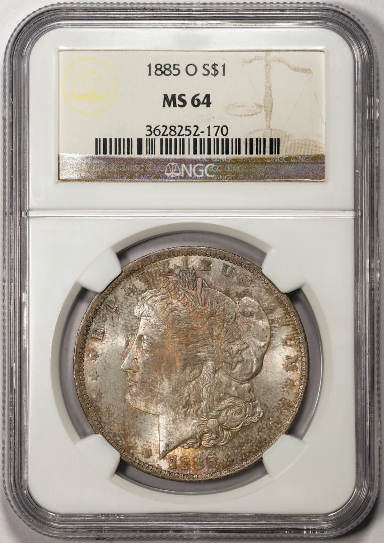 One 1885-O $1 Morgan Silver Dollar Coin NGC MS64. NGC Certified.