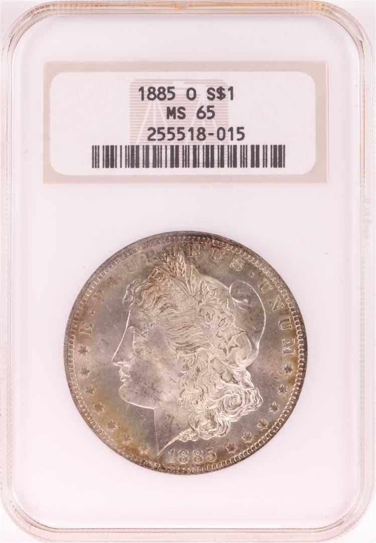 One 1885-O $1 Morgan Silver Dollar Coin NGC MS65 Nice Toning Old Holder. NGC Certified.