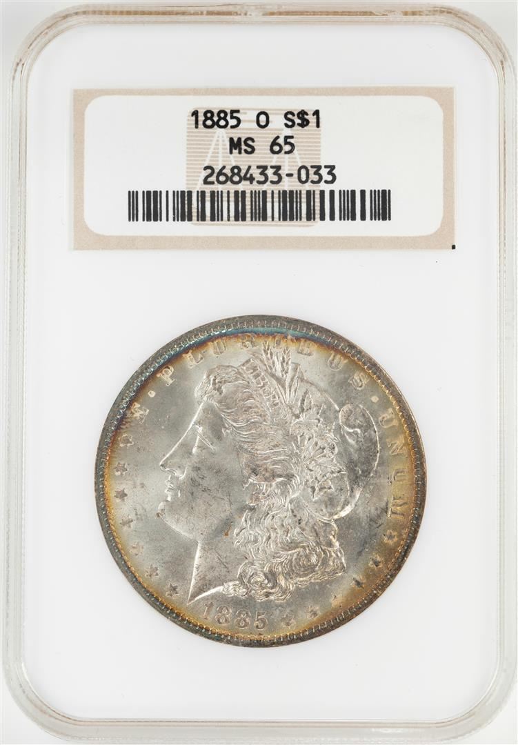One 1885-O $1 Morgan Silver Dollar Coin NGC MS65 Nice Toning. NGC Certified.