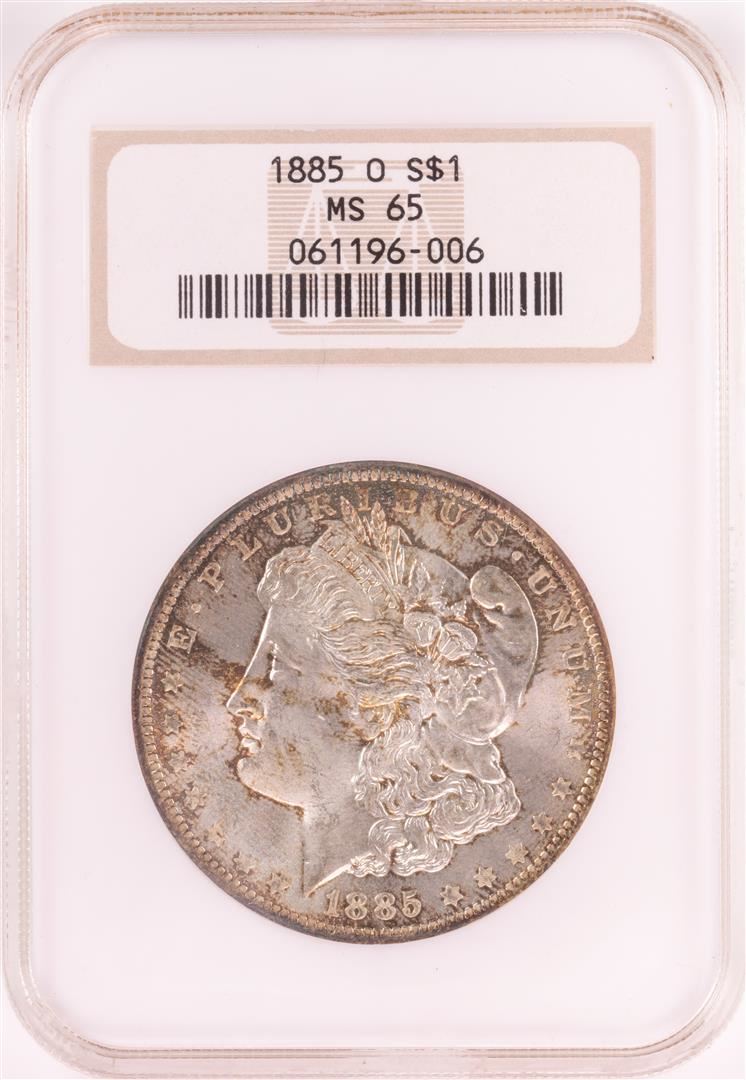 One 1885-O $1 Morgan Silver Dollar Coin NGC MS65 Old Holder. NGC Certified.