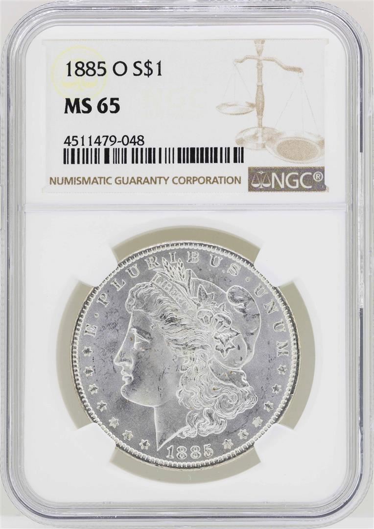 One 1885-O $1 Morgan Silver Dollar Coin NGC MS65. NGC Certified.