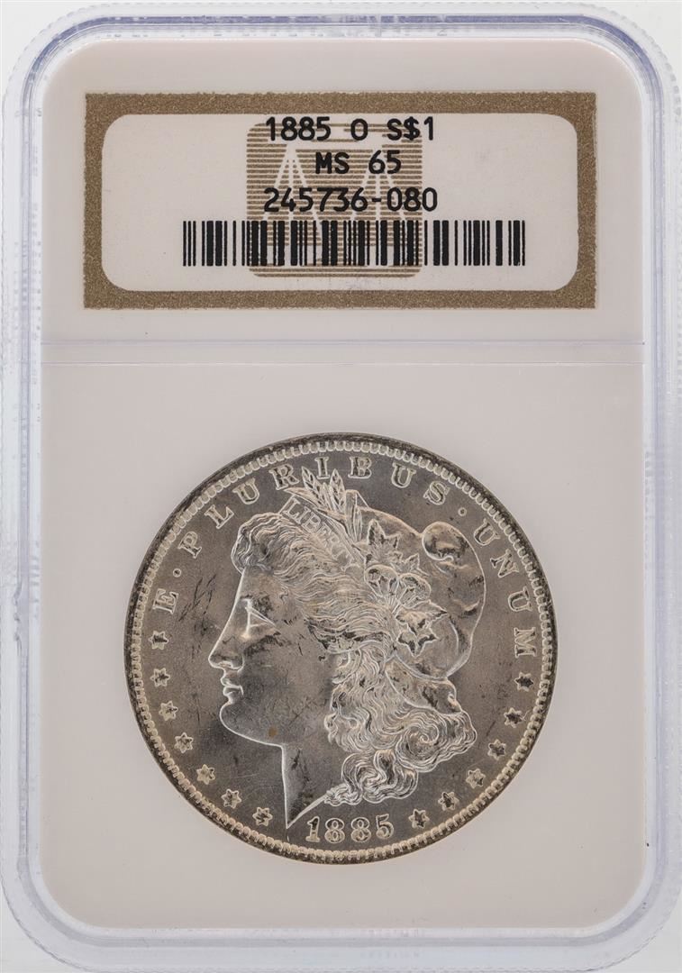 One 1885-O $1 Morgan Silver Dollar Coin NGC MS65. NGC Certified.