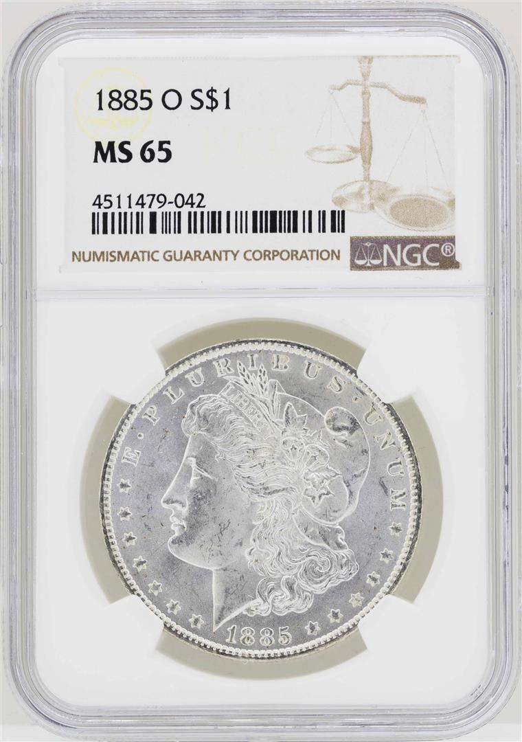 One 1885-O $1 Morgan Silver Dollar Coin NGC MS65. NGC Certified.